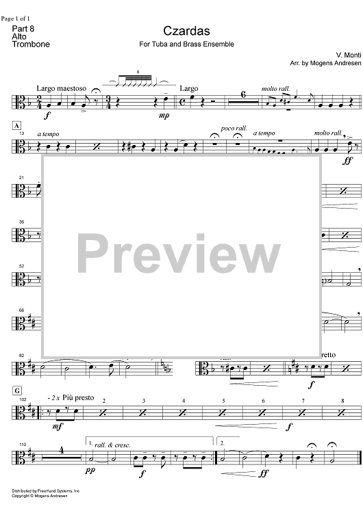 Digital Sheet Music for Czardas - Alto Trombone by Mogens Andresen, Vittorio Monti scored for Brass Ensemble; id:322213