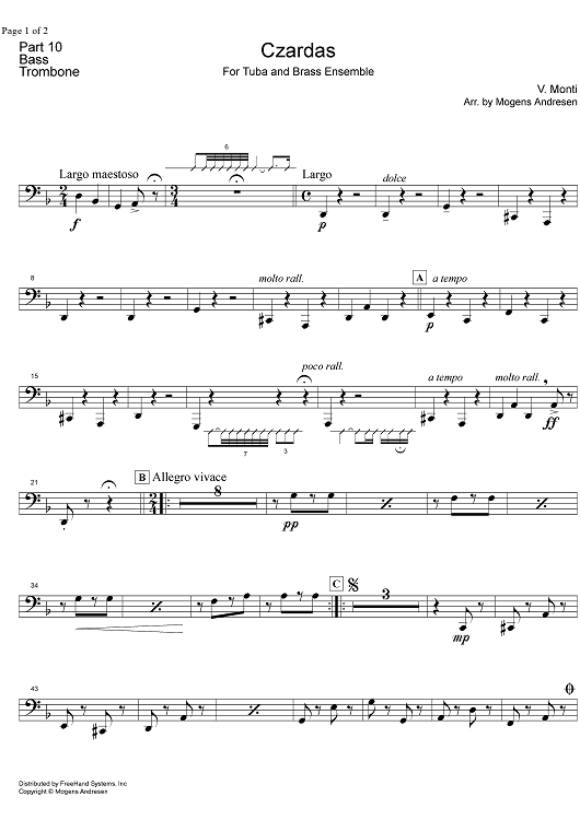 Digital Sheet Music for Czardas - Bass Trombone by Mogens Andresen, Vittorio Monti scored for Brass Ensemble; id:322215