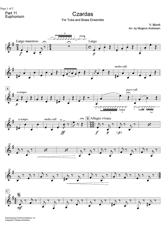 Digital Sheet Music for Czardas - Euphonium by Mogens Andresen, Vittorio Monti scored for Brass Ensemble; id:322216