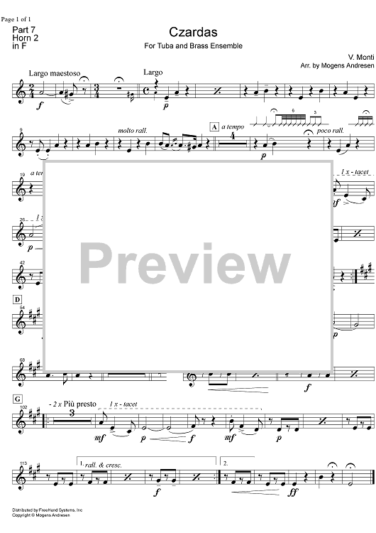 Digital Sheet Music for Czardas - Horn in F 2 by Mogens Andresen, Vittorio Monti scored for Brass Ensemble; id:322212