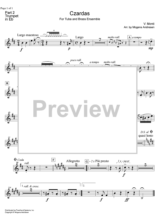 Digital Sheet Music for Czardas - Trumpet in E-flat by Mogens Andresen, Vittorio Monti scored for Brass Ensemble; id:322207