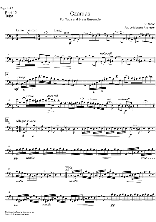 Digital Sheet Music for Czardas - Tuba by Mogens Andresen, Vittorio Monti scored for Brass Ensemble; id:322217