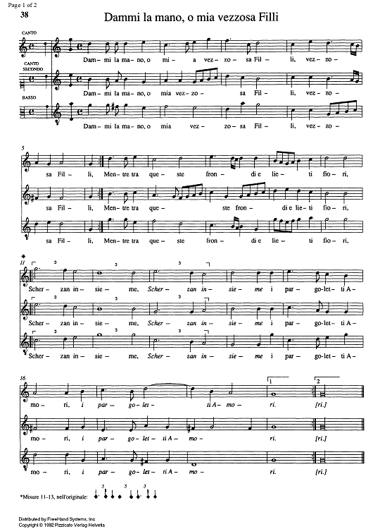 "Dammi la mano, o mia vezzosa Filli" Sheet Music by Alessandro Orologio