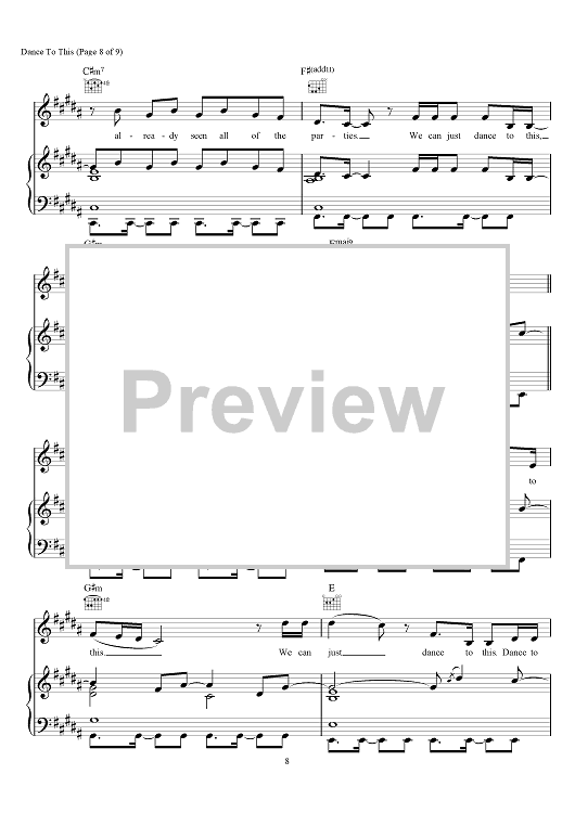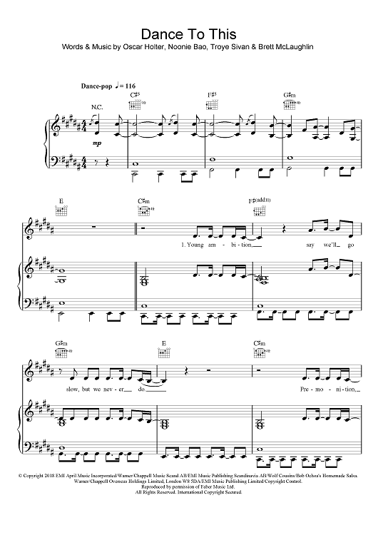 Digital Sheet Music for Dance To This by Ariana Grande, Oscar Holter, Troye Sivan, Brett McLaughlin, Noonie Bao scored for Piano/Vocal/Chords; id:466412