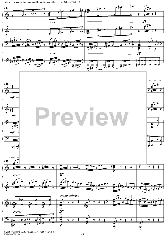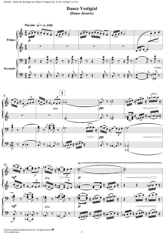 Digital Sheet Music for Dance Vestigial, from "Music for the Open Air", Op. 44 by Florent Schmitt scored for 1 Piano, 4 Hands; id:296002