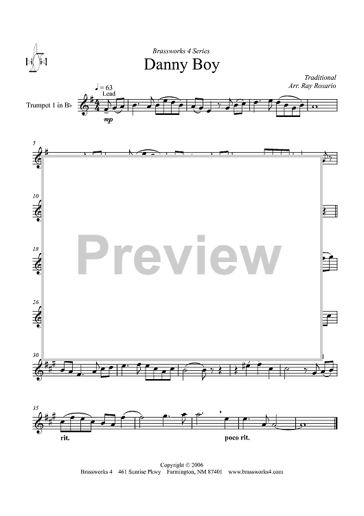 Digital Sheet Music for Danny Boy - Trumpet 1 in B-flat by Traditional, Ray Rosario scored for Brass Quintet; id:358100