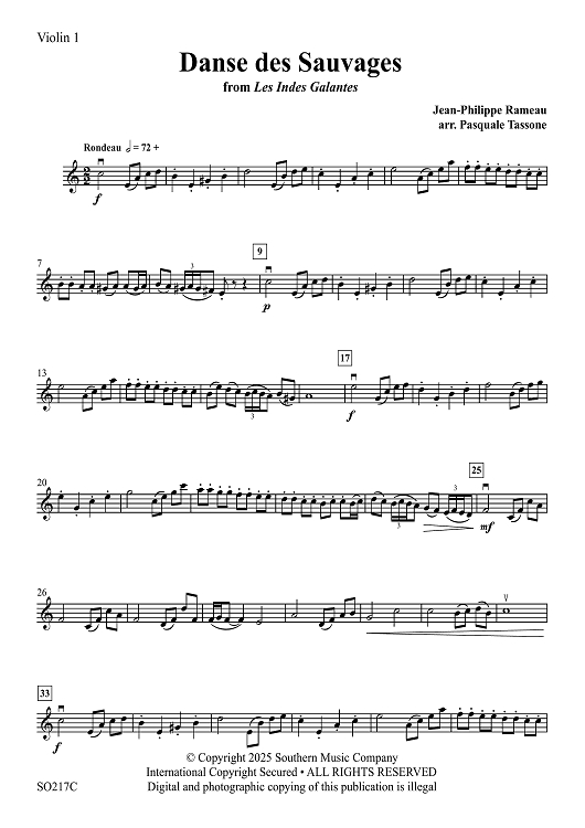 Digital Sheet Music for Danse des Sauvages - Violin 1 by Jean-Philippe Rameau, Pasquale Tassone scored for Orchestra; id:506953
