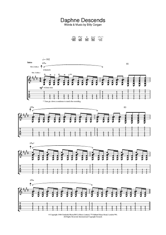 Digital Sheet Music for Daphne Descends by Smashing Pumpkins scored for Guitar Tab; id:376749