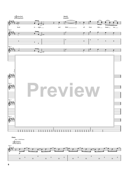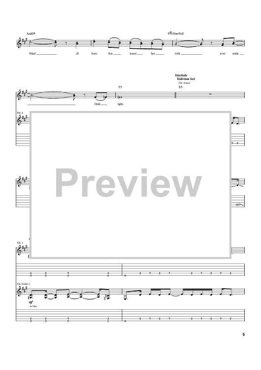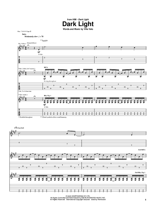 Digital Sheet Music for Dark Light by HIM, Ville Valo scored for Guitar Tab; id:393417