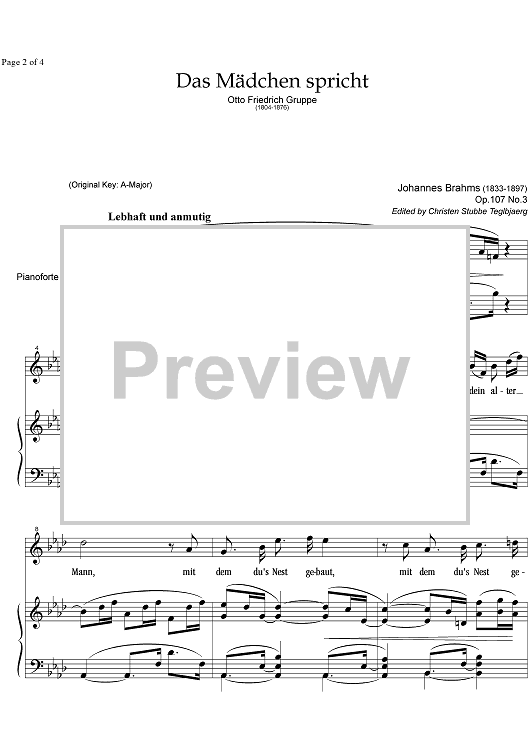 Digital Sheet Music for Das Mädchen spricht Op.107 No. 3 by , Johannes Brahms scored for Soprano or Tenor/Piano; id:343292
