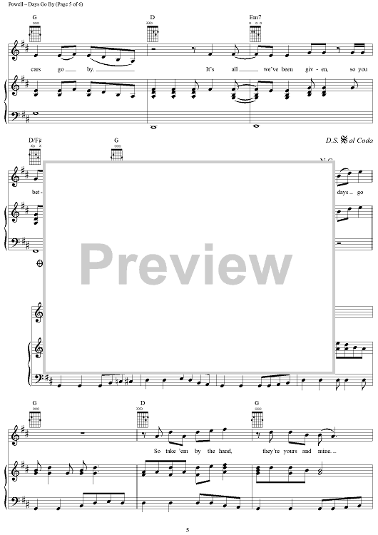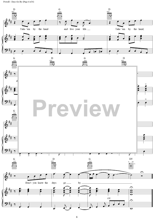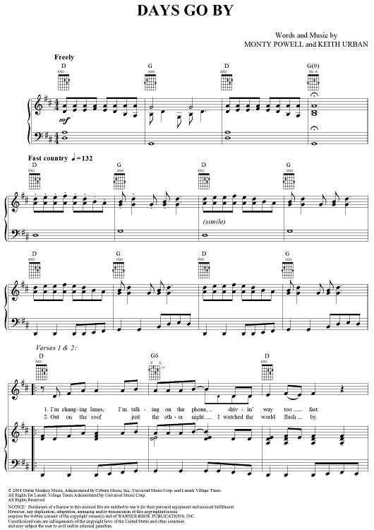 Digital Sheet Music for Days Go By by Monty Powell, Keith Urban scored for Piano/Vocal/Chords; id:307590