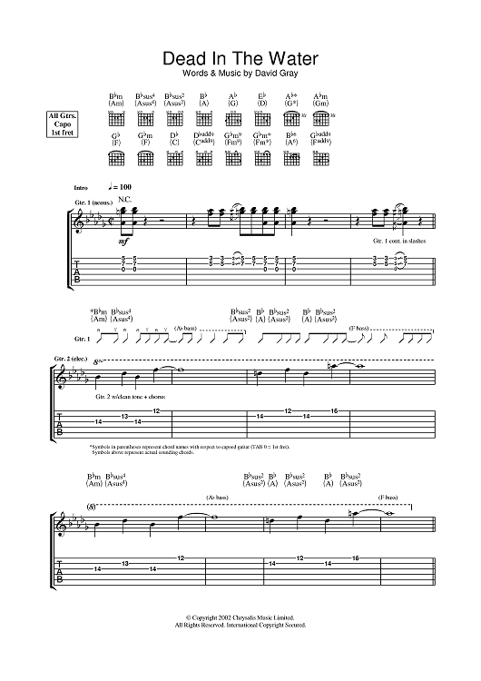 Digital Sheet Music for Dead In The Water by David Gray scored for Guitar Tab; id:377766