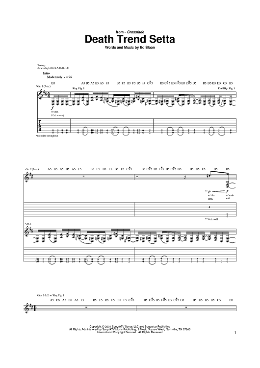 Digital Sheet Music for Death Trend Setta by Crossfade, Ed Sloan scored for Guitar Tab; id:384278