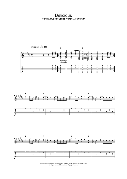 Digital Sheet Music for Delicious by Sleeper scored for Guitar Tab; id:376285