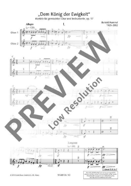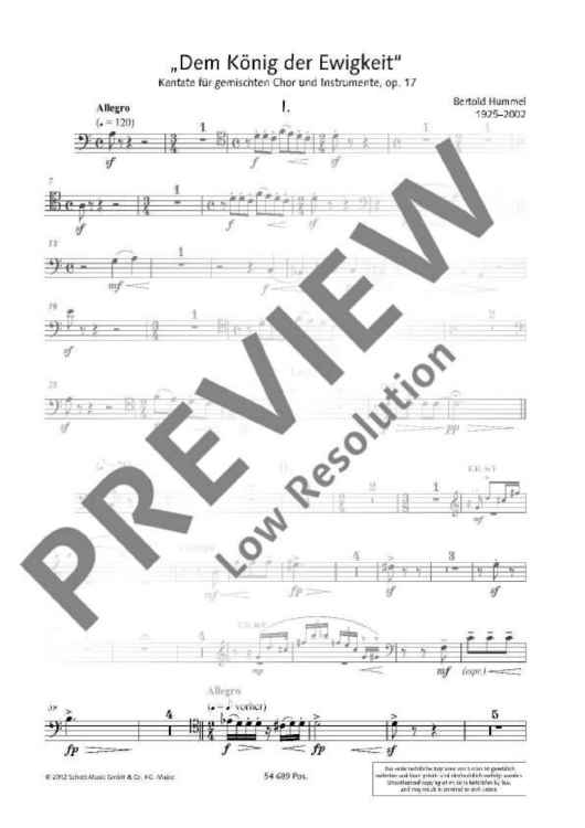 Digital Sheet Music for Dem König der Ewigkeit - Set of Parts by Bertold Hummel scored for Mixed Choir And Instruments; id:484545
