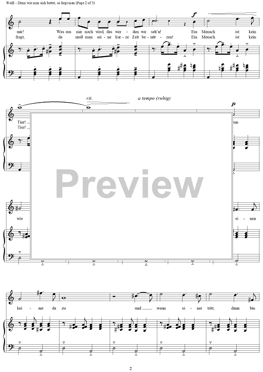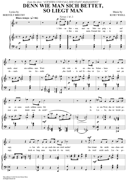 "Denn wie man sich bettet, so liegt man" Sheet Music by Kurt Weill