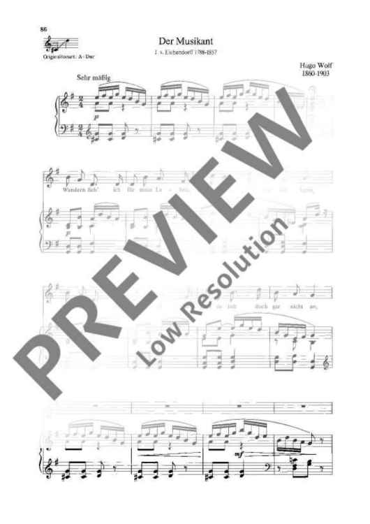Digital Sheet Music for Der Musikant by Hugo Philipp Jakob Wolf scored for Voice And Piano; id:495557