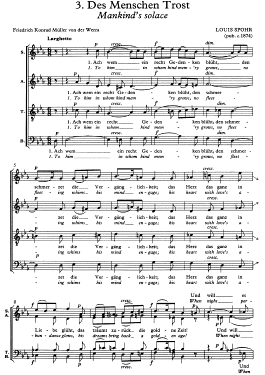Digital Sheet Music for Des Menschen Trost by Louis Ludwig Spohr scored for SATB Choir; id:336793