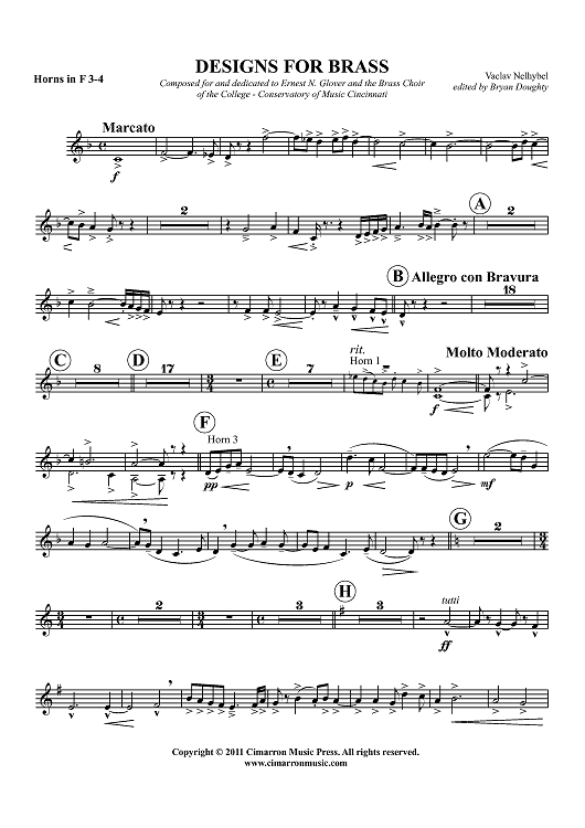 "Designs for Brass - Horn in F 3 & 4" Sheet Music by Vaclav Nelhybel