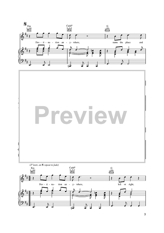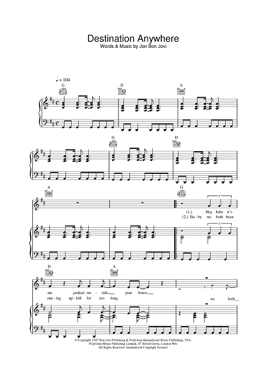 Digital Sheet Music for Destination Anywhere by Bon Jovi, Jon Bon Jovi scored for Piano/Vocal/Chords; id:376479
