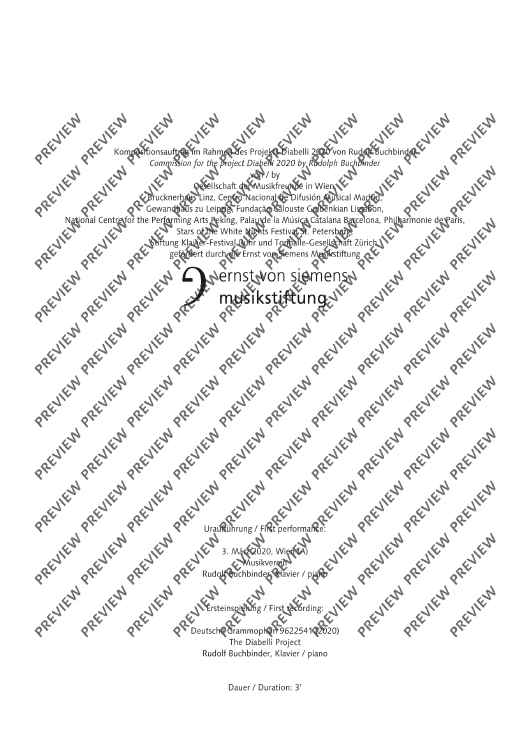 Jörg Widmann's Diabelli Variation was created as part of Rudolf Buchbinder's Diabelli 2020 project, in which numerous contemporary composers composed new variations on Beethoven's cycle. His multi-part variation exhibits characteristic Beethoven features and never loses its typical Widmann character.