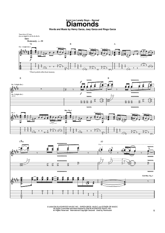 Digital Sheet Music for Diamonds by Henry Garza, Joey Garza, Ringo Garza, Los Lonely Boys scored for Guitar Tab; id:391063