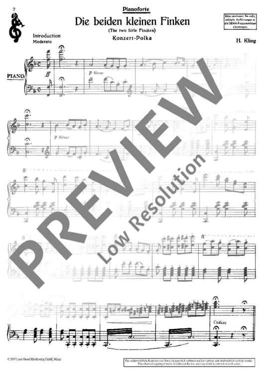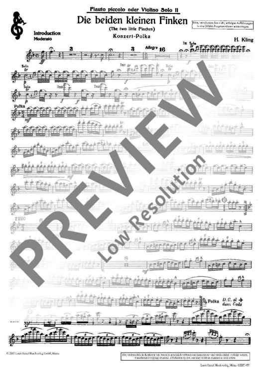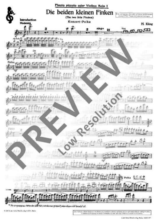 Digital Sheet Music for Die beiden kleinen Finken by Henry Kling scored for 2 Flutes Or 2 Violins And Piano; id:477294