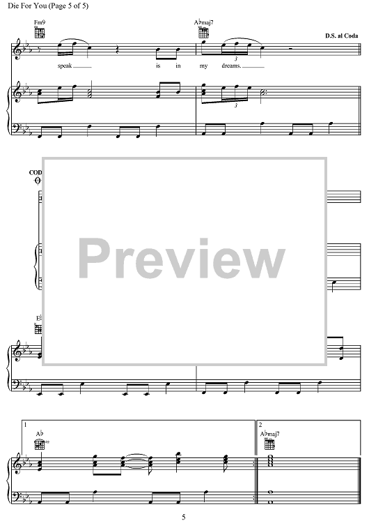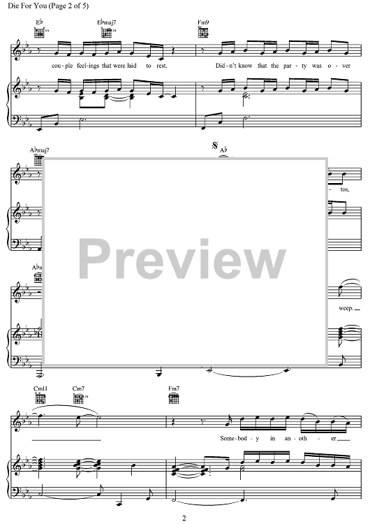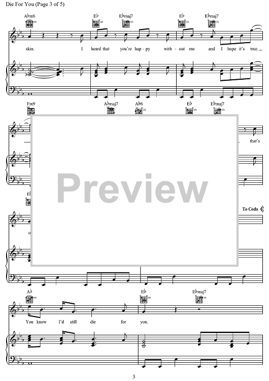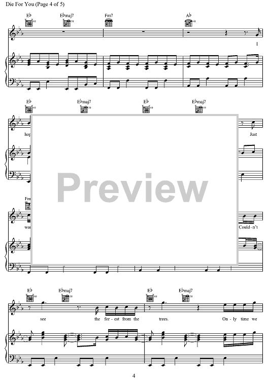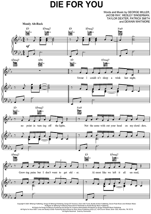Digital Sheet Music for Die for You by Patrick Smith, Joji, George Miller, Jacob Ray, Wesley Singerman, Taylor Dexter, Dewan Whitmore scored for Piano/Vocal/Chords; id:498240