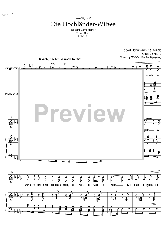 Digital Sheet Music for Die Hochländer-Witwe Op.25 No.10 by , Robert Schumann scored for Soprano or Tenor/Piano; id:332474
