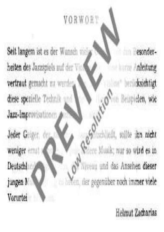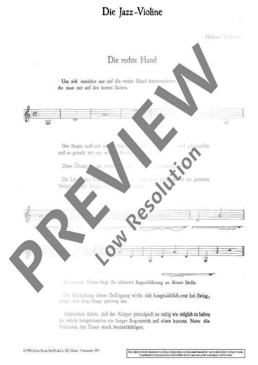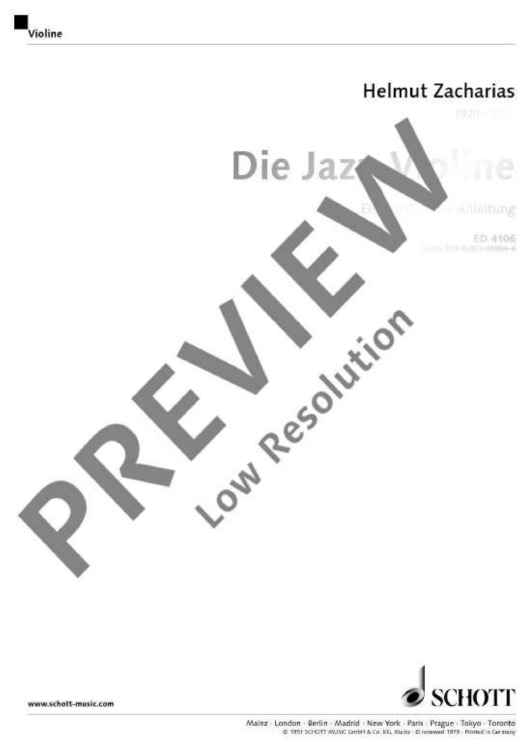 Seit langem ist es der Wunsch vieler Geiger, mit den Besonderheiten des Jazzspiels auf der Violine durch eine kurze Anleitung vertraut gemacht zu werden. Die "Jazz-Violine" berücksichtigt diese spezielle Technik und zeigt an Hand von Beispielen, wie Jazz-Improvisationen auszuführen sind. Jeder Geiger, der sich zum Jazz entschließt, sollte ihn nicht weniger erst nehmen als jede andere Musik; nur so wird es in Deutschland möglich sein, das Niveau und das Ansehen dieser jungen Musikgattung zu heben, der gegenüber noch immer viele Vorurteile bestehen. (Helmut Zacharias, 1950)