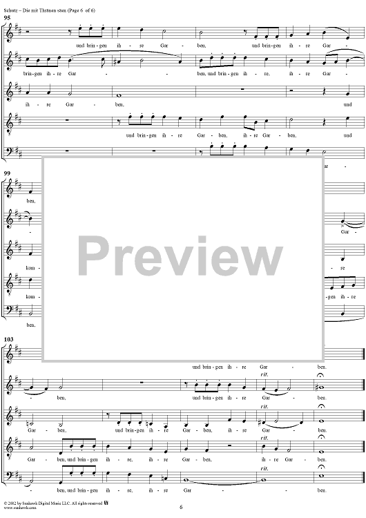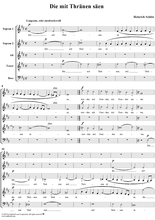 Digital Sheet Music for Die mit Thränen säen by Heinrich Schütz scored for Mixed Chorus; id:259636