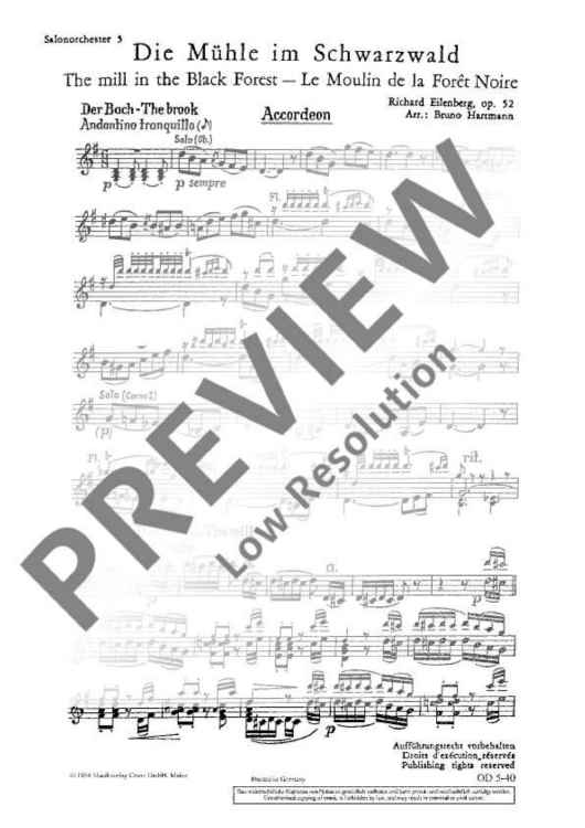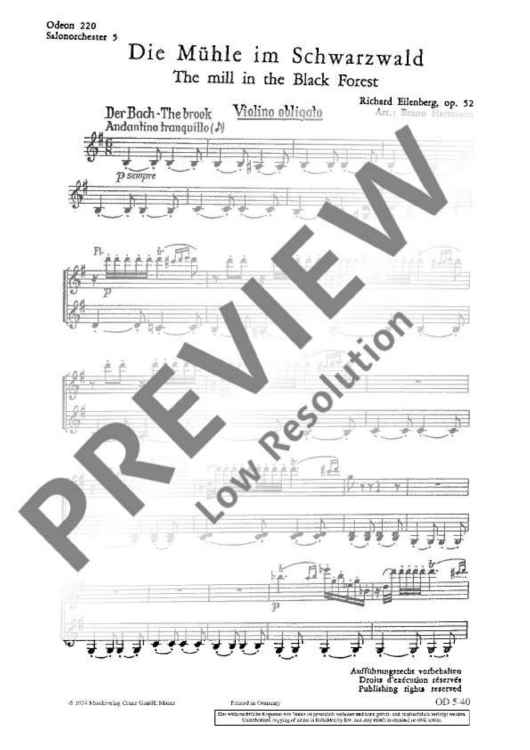 "Die Mühle im Schwarzwald - Score and Parts" Sheet Music by Richard Eilenberg