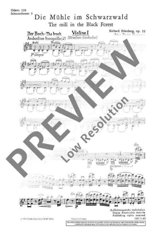 Digital Sheet Music for Die Mühle im Schwarzwald - Score and Parts by Richard Eilenberg scored for Orchestra; id:489345