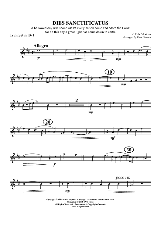 "Dies Sanctus - Trumpet 1" Sheet Music by Giovanni Pierluigi da Palestrina