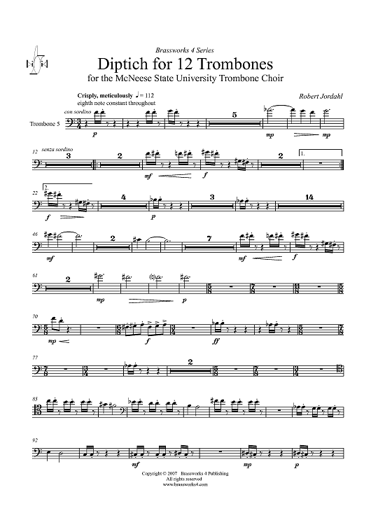 "Diptich for Twelve Trombones - Trombone 5" Sheet Music by Robert Jordahl