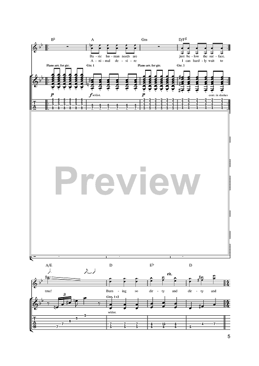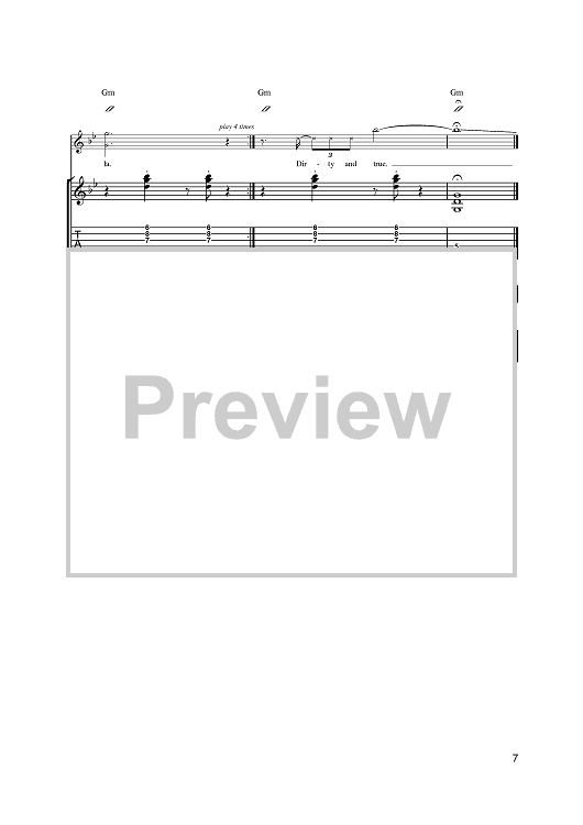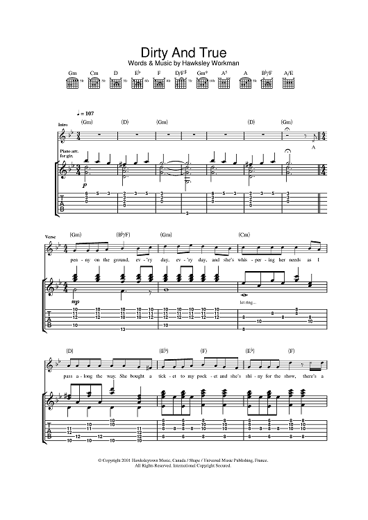 Digital Sheet Music for Dirty And True by Hawksley Workman scored for Guitar Tab; id:390592