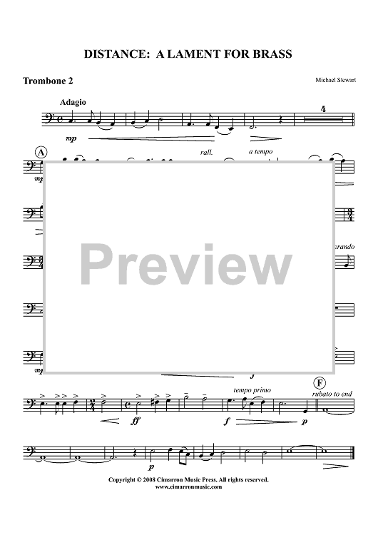 Digital Sheet Music for Distance: A Lament for Brass - Trombone 2 by Michael Stewart scored for Brass Ensemble; id:417080