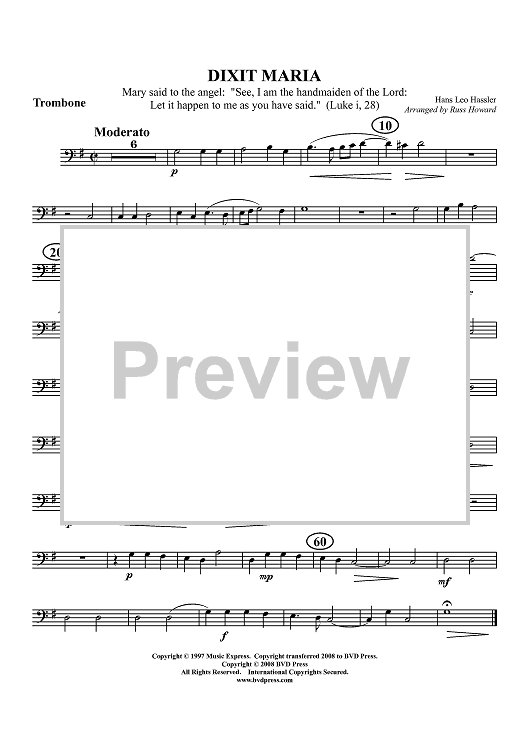 Digital Sheet Music for Dixit Maria - Trombone by Hans Leo Hassler, Russ Howard scored for Brass Quartet; id:404688