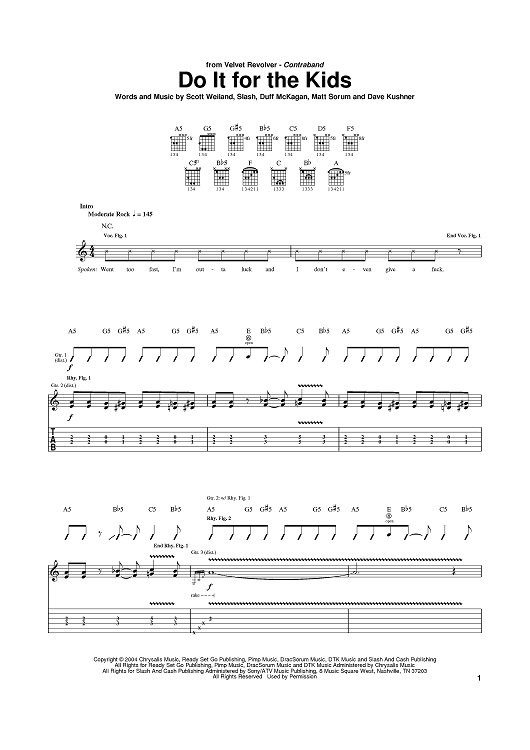 Digital Sheet Music for Do It For The Kids by Scott Weiland, Slash, Dave Kushner, Duff McKagan, Matt Sorum, Velvet Revolver scored for Guitar Tab; id:383505