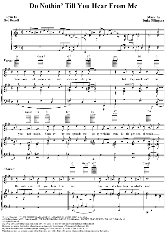 "Do Nothin' Till You Hear From Me" Sheet Music by Duke Ellington