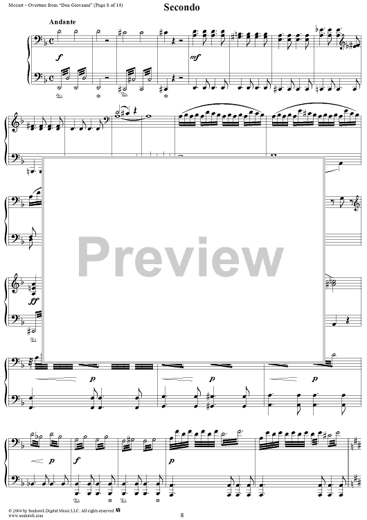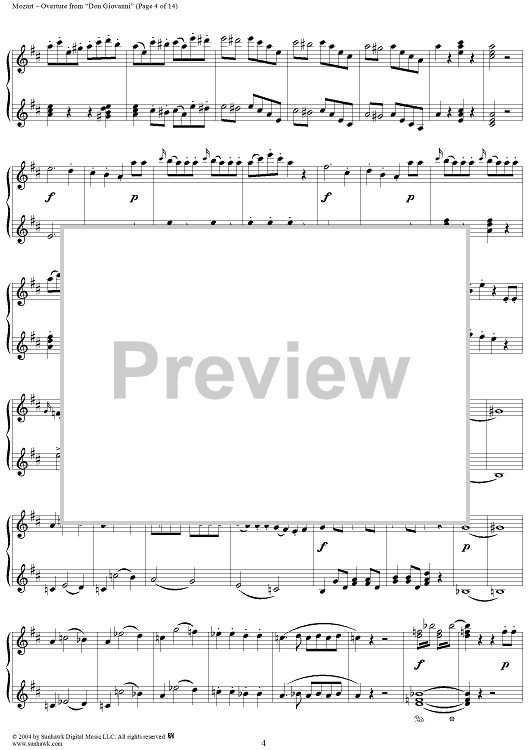 Digital Sheet Music for Don Juan, Overture, K527 by Wolfgang Amadeus Mozart scored for 1 Piano, 4 Hands; id:295552