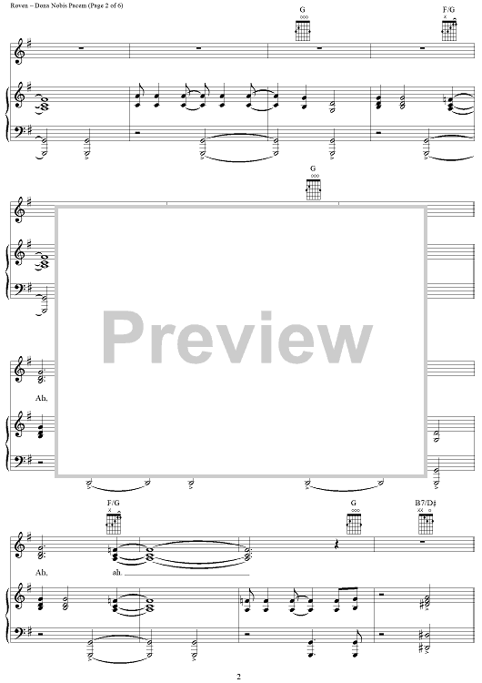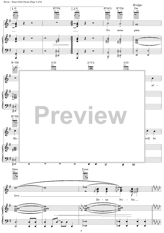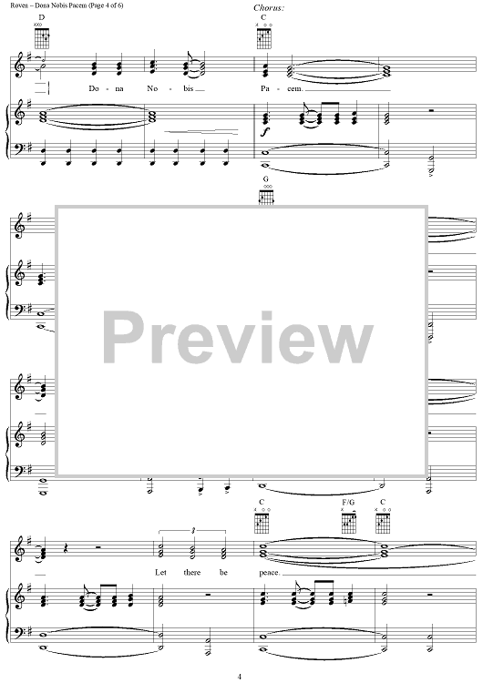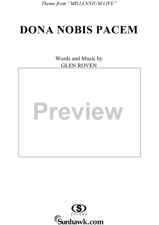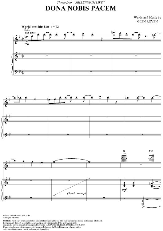 Digital Sheet Music for Dona Nobis Pacem (Theme from Millennium Live) by Glen Roven scored for Piano/Vocal/Chords; id:255614