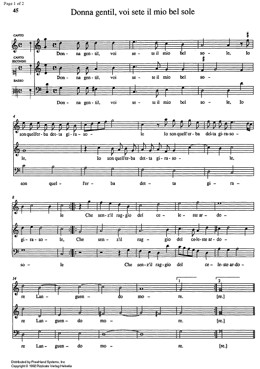 "Donna gentil, voi sete il mio bel sole" Sheet Music by Alessandro Orologio