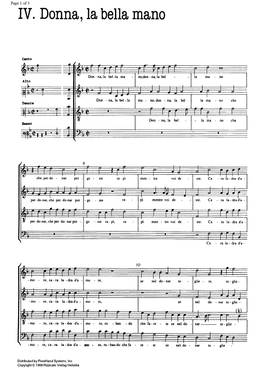 Digital Sheet Music for Donna, la bella mano by , Marc' Antonio Pordenon scored for SATB Choir; id:333783