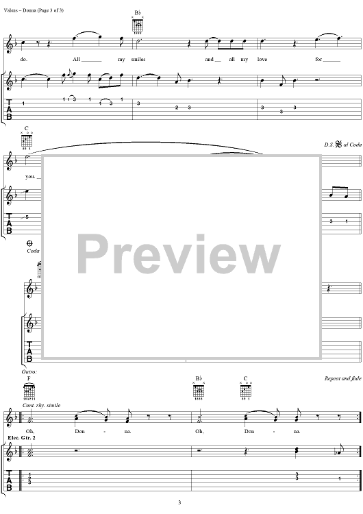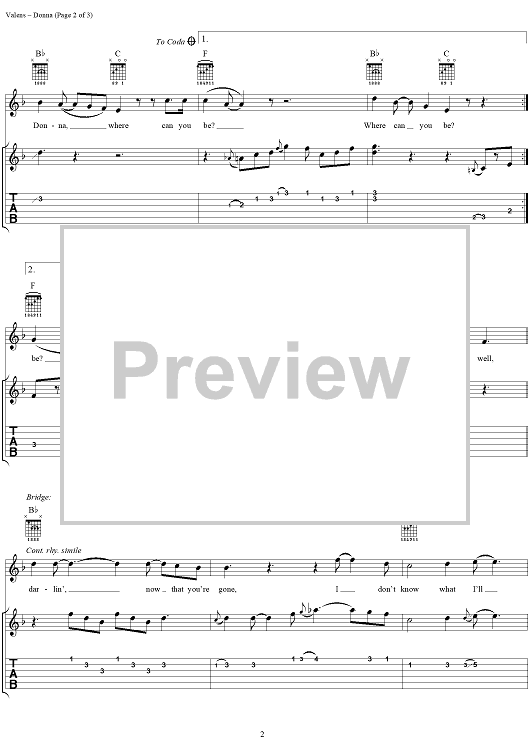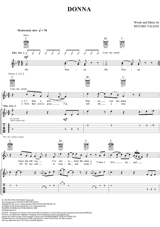 Digital Sheet Music for Donna by Ritchie Valens scored for Easy Guitar Tab/Vocal; id:234553