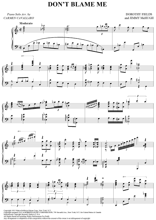 Digital Sheet Music for Don't Blame Me by Dorothy Fields, Jimmy McHugh, Carmen Cavallaro scored for Piano Solo; id:364998