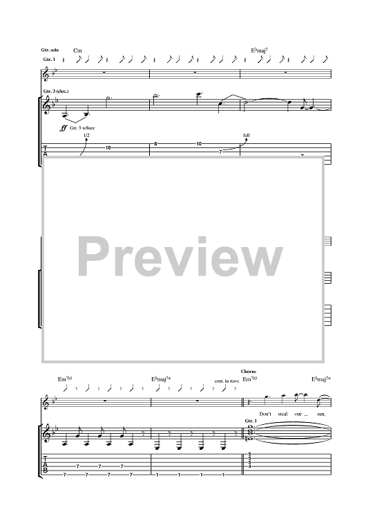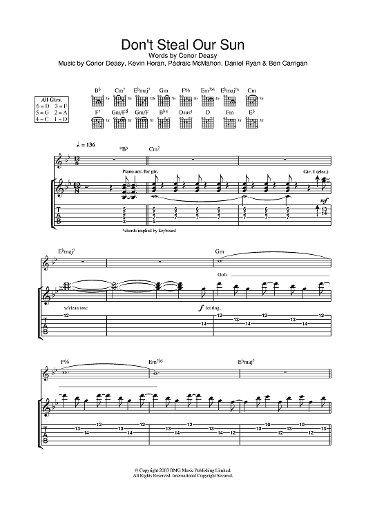 Digital Sheet Music for Don't Steal Our Sun by The Thrills scored for Guitar Tab; id:378122