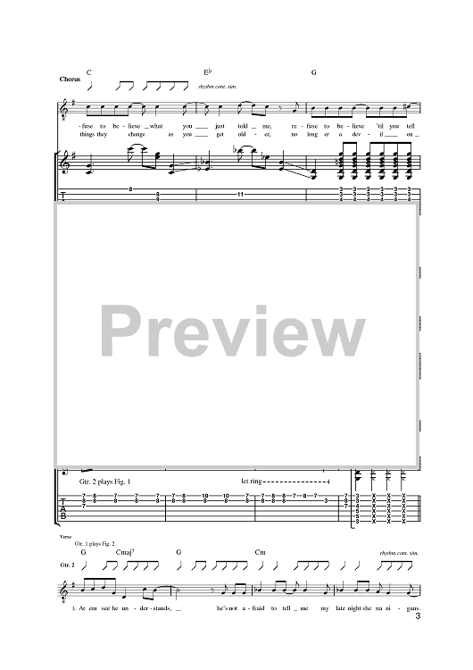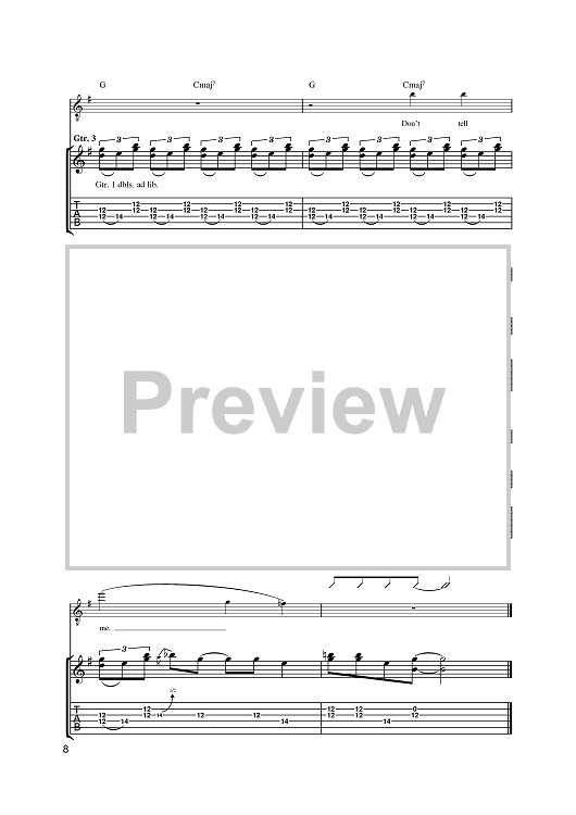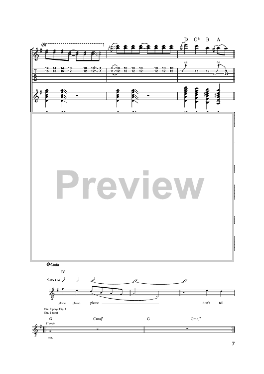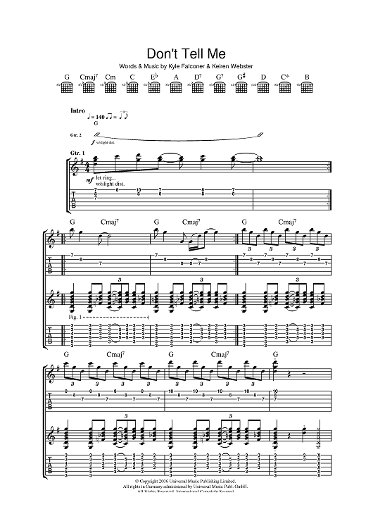 Digital Sheet Music for Don't Tell Me by Kyle Falconer, The View, Keiren Webster scored for Guitar Tab; id:396764