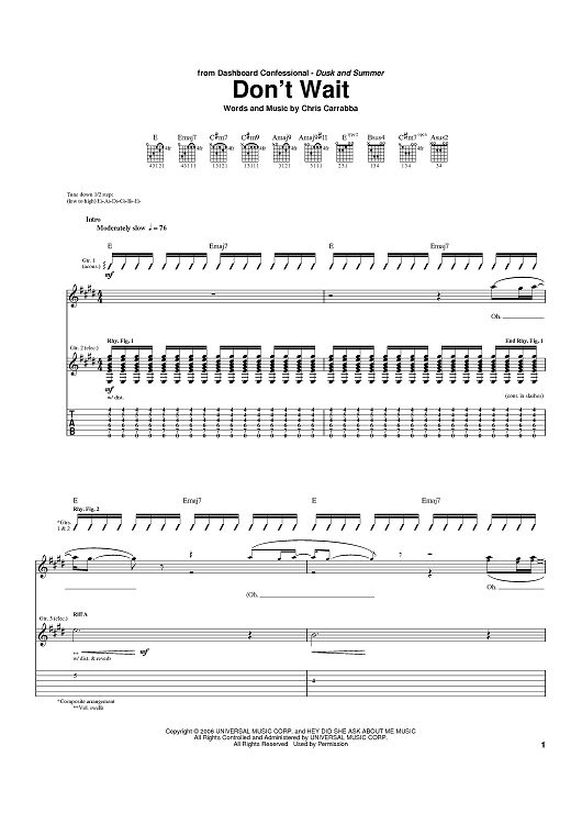 Digital Sheet Music for Don't Wait by Chris Carrabba, Dashboard Confessional scored for Guitar Tab; id:397592