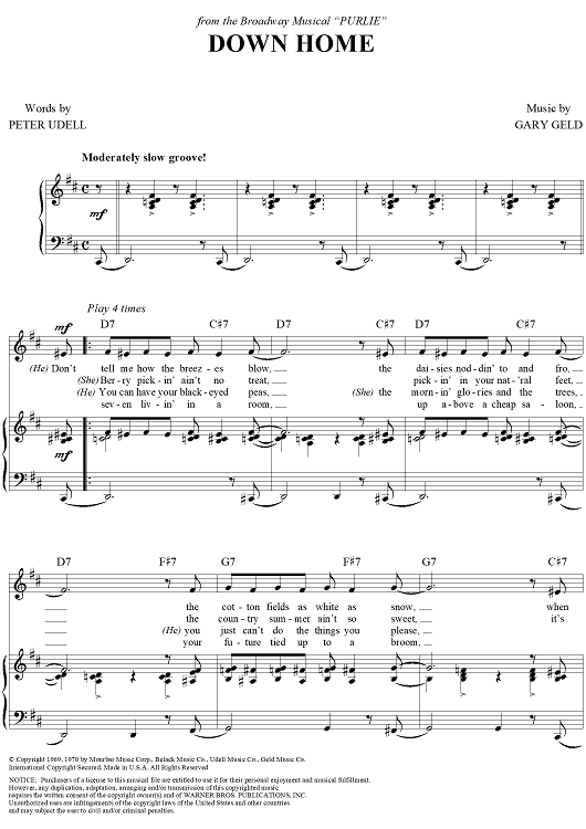 Digital Sheet Music for Down Home by Gary Geld, Peter Udell scored for Piano/Vocal/Chords; id:321676